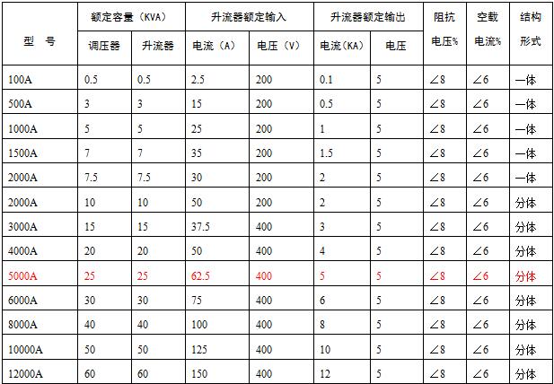 一、SLQ系列升流器(大電流發(fā)生器)主要技術(shù)參數(shù):
