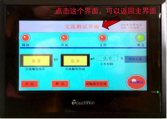 3:參數(shù)設(shè)定一般只需設(shè)定,輸出電壓,泄漏電流,通電時(shí)間三個(gè)參數(shù)即可,其他不要改,設(shè)定好參數(shù)后,點(diǎn)擊“返回”到主界面,再點(diǎn)擊一下“測(cè)試”按鈕,界面“工作”指示燈為紅色并閃爍,升壓指示燈亮,至額定電壓,“升壓”停止并開(kāi)始計(jì)時(shí)-計(jì)時(shí)完成-降壓-主回路斷開(kāi)。整個(gè)耐壓過(guò)程將按要求自動(dòng)完成。并記錄所有參數(shù),點(diǎn)擊“試驗(yàn)報(bào)告打印”將打印測(cè)試結(jié)果。